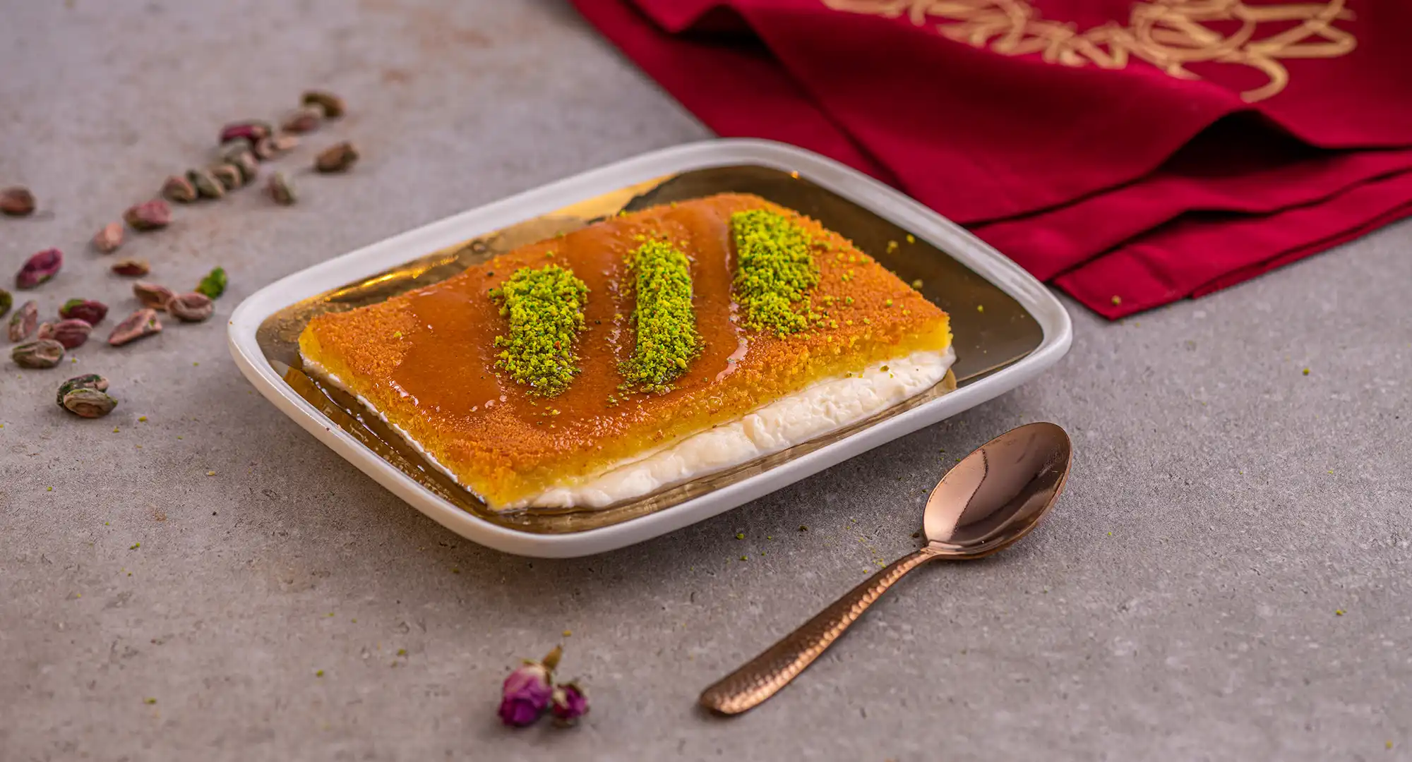 • تقديم عصري مع أصالة الذوق: حرصنا على أن تكون تجربة التذوق متكاملة، من لحظة استقبال الطلب وحتى تقديم الطبق بطريقة أنيقة مزينة بالفستق الحلبي الفاخر.
